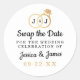 Célébrez en style avec ces mariage chic et très tendance enregistrer les autocollants de date. Ce design est facile à personnaliser avec votre libellé d'événement spécial et vos invités seront ravis quand ils reçoivent ces fabuleux autocollants.