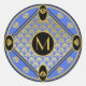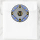 Sticker Rond Chic noir & Azure Art Déco Motif Monogramme