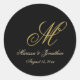 Ces élégants autocollants de mariage monogramme noir sur mesure ajoutent une touche de classe à vos mailings mariages et favorisent les cadeaux. Le modèle design chic présente l'initiale monogramme du nom de famille du marié ainsi que les prénoms de la mariée et du marié et la date du mariage en faux or pour personnaliser. Consultez notre boutique I Love Weddingz pour en savoir plus sur cette collection. Conçu par Susan Coffey.