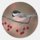 Sticker Rond CHICKADEE & BERRIES ROUGES par SHARON SHARPE