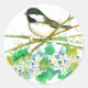 Sticker Rond Chickadee Bird May Flower Catkins Willow Branches