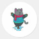 Sticker Rond Chien à Patinage sur glace avec patins sur glace e