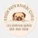 Illustration simple d'un chien de carlin gai, sortez la langue, jetant un oeil derrière une cloison. Seules sa tête et ses pattes avant sont visibles. Une patte est levée dans un geste de vague. Customisez avec votre propre nom ou message.