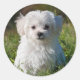 Sticker Rond Chien chiot maltais blanc mou