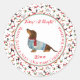 Sticker Rond Chien Dachshund à travers neige Noël Feu brillant