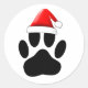 Empreinte de patte de chien de dessin en noir. Autocollants de Noël personnalisés. Version casquette du Père Noël. Idée cadeau pour les amoureux de les chiens.
