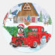 Sticker Rond Chien Schnauzer en livraison de Noël Camion Neige