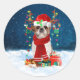 Sticker Rond Chien Shih Tzu en neige avec cadeaux de Noël