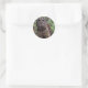 Sticker rond classique de Chouette barrée. Une belle chouette adulte barrée perchée sur un membre d'arbre. Photo de Brian Kraus.