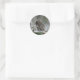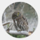 Sticker rond Classique de Chouette Pygmée du Nord. Un petit hibou pygmée du Nord perché sur un membre d'arbre. Photo de Dominik Van Opdenbosch.