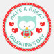 Sticker Rond Chouette Turquoise mignonne et coeurs Saint-Valent