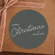 Un stickers tendance design de vacances avec une typographie manuscrite et moderne en blanc sur une couleur gris vert foncé. Le nom peut être facilement customisé pour une touche personnelle. Un design de Noël simple, minimaliste et contemporain pour se démarquer de cette période de vacances !