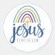 Sticker Rond Christian Jesus vous aime Retro Rainbow Cross
