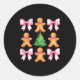 Sticker Rond Christmas Tree Gingerbread Man Bow Pattern Xmas Gi