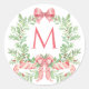Sticker Rond Christmas Wreath Candy Cane Bow | Monogram