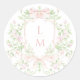 Sticker Rond Cimier Doux avec Bow rose pâle | Mariage monogramm