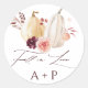 Cet autocollant mariage présente des citrouilles blancs et jaunes d'aquarelle ornés de fleurs bordeaux, marrons et roses rousses sur les feuilles d'automne. Pour une personnalisation plus avancée de cette conception, cliquez sur le lien "Customiser plus loin". Des articles correspondants sont également disponibles.