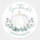 Ces stickers Thanksgiving sont décorés d'un citrouille blanc aquarelle et d'eucalyptus dans des tons doux de vert. Facile à personnaliser. Aquarelle originale © Michele Davies.