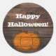 Sticker Rond Citrouille Rustique Bois Halloween Automne Automne