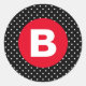 Sticker Rond Classic Black & White Polka Dot with Red Monogram