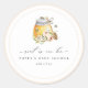 Doux comme peut être, autocollant baby shower. Jolie aquarelle miel abeilles, pot de miel et arrangement floral de jardin d'été avec bordure pastel couleur pêche.