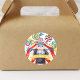 Beau autocollant rond d'anniversaire du carnaval de cirque pour TOUT ÂGE! Cet autocollant présente de mignons animaux de cirque, des ballons d'air, des bonbons, des rubans, des drapeaux de bunting festifs, des confettis colorés et bien plus encore.