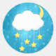 Les étoiles sont suspendues d'un nuage contre un arrière - plan bleu étoilé texturé. Une lune jaune survole derrière le nuage.