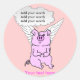 Cette carte présente un cochon volant rose sur un arrière - plan étoilé rose. La couleur Arrière - plan peut être modifiée dans l'onglet "customiser".