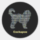 Sticker Rond Cockapoo Chien Jaune et Grille Noire