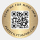 Autocollants ronds avec votre code QR et texte personnalisé sur une image imprimée arrière - plan dégradé doré. Modifiez les polices et les couleurs de police, déplacez et redimensionnez les éléments à l'aide de l'outil de conception. Suivez-nous sur Facebook : @businessstationery pour plus de produits, nouvelles, ventes et plus encore.