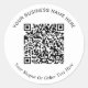 Autocollant rond de promotion moderne pour votre entreprise ou organisation. Entrez l'adresse URL de votre site Web pour créer un code QR numérisable lié à votre site Web, et ajoutez deux lignes de texte, comme le nom et le slogan de votre société.