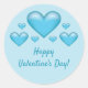 Sticker Rond Coeurs bleus et texte Heureuse Sainte-Valentin