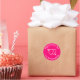 Heureuse Sainte-Valentin fuchsia rose chaud et blanc coeurs mignons texte de script personnalisé élégant moderne Stickers ronds Classic
