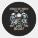 Sticker Rond Coincé Entre Idk, I Et Idgaf, Drôle Skeleton Gan