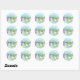 Un joli autocollant doux décoré d'un colibri visitant des fleurs de jarret rose lavande peintes en aquarelle.