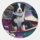Sticker Rond Collie frontalier sur une pagaie : une aventure Pi