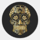 Sticker Rond Cool Black & Gold Sugar Skull Day of the Dead