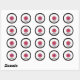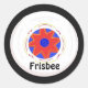 Un autocollant amusant avec une frisbee blanche aux motifs bleu et rouge. Le dicton 'frisbee' peut être changé ou supprimé.