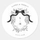 Ajoutez une touche intemporelle à vos faveurs de mariage avec ce Coquette Bow Crest Monogramme Français Mariage Classic Round Sticker. Doté d'une crête vintage botanique feutrée et d'un élégant monogramme français, cet autocollant incarne une esthétique raffinée de vieux argent. Parfait pour sceller les invitations, les sacs de faveur ou la décoration, il apporte charme fantaisie et élégance victorienne à votre célébration mariage !