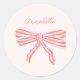 Sticker Rond Coquette Bow rose esthétique avec nom