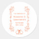 Colorant couleur corail mariage cloches design de toilettage. Vous pouvez customiser cet autocollant mariage couleur corail avec vos propres détails mariages. Si vous avez besoin d'aide pour vous customiser, contactez-nous via le lien de cette page. Bells scrollwork design personnalisé corail coloré autocollant mariage