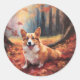 Sticker Rond Corgi dans les feuilles d'automne automne automne