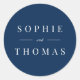 Cet autocollant mariage présente les noms du couple mariage en blanc contre une couleur arrière - plan modifiable ; pour passer du bleu à une couleur de votre choix, cliquez sur le bouton personnaliser. Personnalisez-le en remplaçant le texte de l'espace réservé. Pour plus d'options comme changer la police, sa taille et l'espacement entre les lettres cliquez sur le bouton "Personnaliser". *Veuillez noter que le filigrane Zazzle qui apparaît dans l'aperçu du zoom n'apparaîtra PAS sur le produit imprimé final. © Bois de rose et agrumes