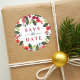 La conception festive de l'autocollant des fêtes et du sceau de l'enveloppe présente une belle conception aquarelle du feuillage de Noël avec des feuilles de houx vertes et des baies rouges encadrant un "Sauver la date" élégant avec un texte d'année personnalisé.
