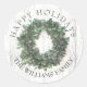Habillez vos cadeaux et mailings cette saison de vacances avec notre autocollant rustique décoratif monogrammé avec votre nom de famille. Ce design est composé d'un arrière - plan de bois patiné blanc et gris avec une belle couronne de laurier vert au centre. Au-dessus de la couronne on peut lire "Joyeuses Fêtes" et en-dessous, vous trouverez votre nom qui peut être facilement personnalisé par vous. Conçu par un artiste de renommée mondiale © Tim Coffey.