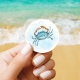 Ces autocollants ronds sont munis d'un crabe bleu aquarelle sur une vague d'océan. Ces étiquettes sont parfaits pour un usage quotidien, des événements côtiers spéciaux et des mariages sur la plage.