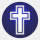 Autocollant chrétien unique avec croix religieuse blanche sur arrière - plan bleu marine.