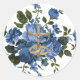 Sticker Rond Crucifix en or Floral Rose bleu religieux