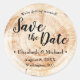 Ces autocollants ronds disposent d'un arrière - plan de disque en bois coupé pour lui donner une sensation rustique pour votre mariage, sauf les dates. Un mariage sauve la date qui est mémorable. Annoncez votre fiançailles avec cet autocollant rond moderne. Une typographie élégante. Vient en 2 tailles. Trouvez également l'aimant rond correspondant.