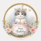 Sticker Rond Cute Pastel Kitten Gâteau d'anniversaire - Anniver
